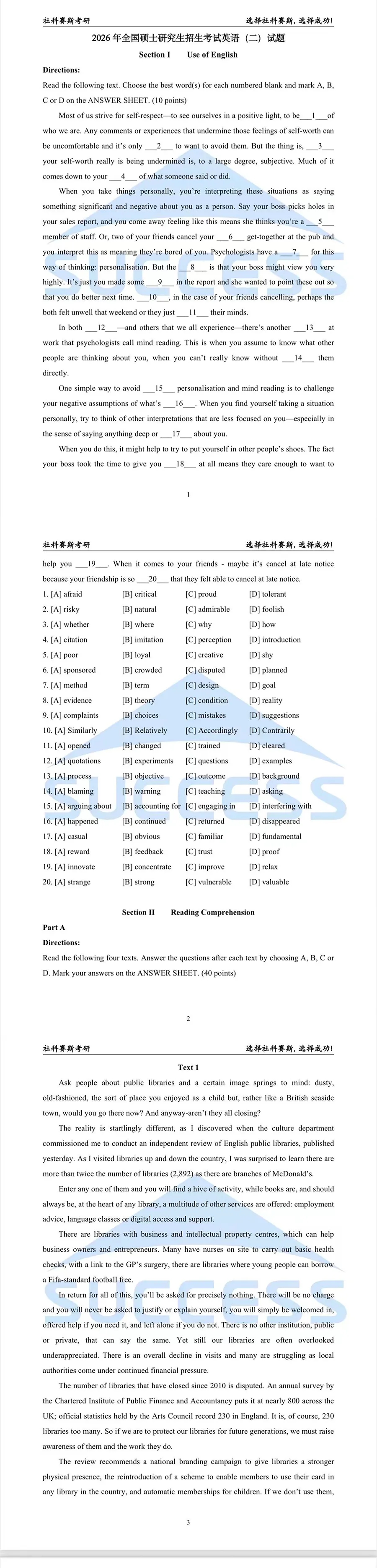 導(dǎo)讀:2026考研 MBA EMBA MEM MPA MPAcc《英語(yǔ)二》真題