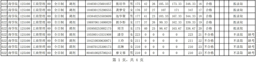 2020MBA研究生調(diào)劑四批復(fù)試結(jié)果匯總表