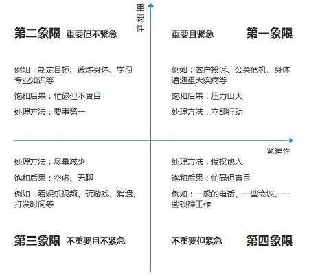 把工作內(nèi)容按以上四象限來劃分,然后依據(jù)緊急或者重要程度有計劃的安排完成工作,時間一長,就不會感覺自己每天都忙忙碌碌,被工作牽著鼻子走。