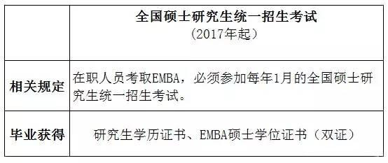 2016年4月,全國(guó)工商管理碩士(MBA)教育指導(dǎo)委員會(huì)出臺(tái)《教育部關(guān)于進(jìn)一步規(guī)范工商管理碩士專業(yè)學(xué)位研究生教育的意見》,規(guī)定從2017年起,高級(jí)管理人員工商管理碩士(EMBA)統(tǒng)一納入每年1月的全國(guó)碩士研究生統(tǒng)一招生考試。自2016年12月1日起,各培養(yǎng)院校不再自行組織高級(jí)管理人員工商管理碩士專業(yè)學(xué)位研究生招生考試。