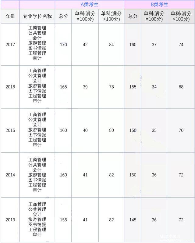 導(dǎo)讀:還有二十多天就要聯(lián)考了,聽說(shuō)管理類的專碩不僅考試內(nèi)容相同,能相互調(diào)劑,而且國(guó)家復(fù)試分?jǐn)?shù)線都一樣?沒(méi)錯(cuò),管理類專碩有七個(gè),它們歷年分?jǐn)?shù)線都相同,而且初試之后還可以相互調(diào)劑。今天,先跟小編了解它們近五年的國(guó)家分?jǐn)?shù)線吧。(注:此內(nèi)容不包括34所自主劃線院校分?jǐn)?shù)線)