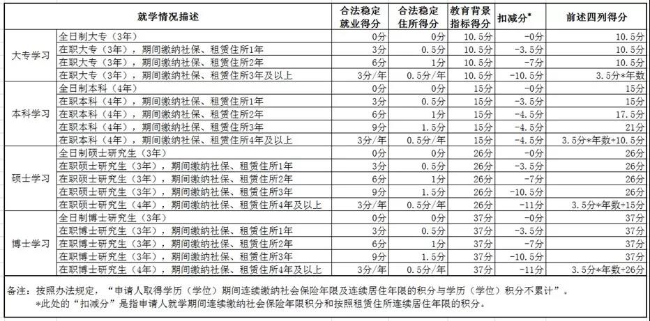 在職學習期間,扣除的連續(xù)繳納社保和連續(xù)居住年限分值不高于按學歷積分增加的分值,并統(tǒng)一按照租賃住所扣減連續(xù)居住年限積分。