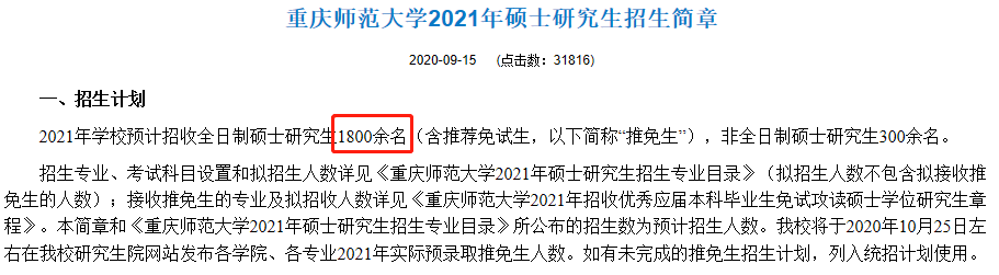 20年全日制研究生招收4600,其中推免生2300;21年全日制招收5600,其中推免生2800,實(shí)際統(tǒng)考擴(kuò)招500人。