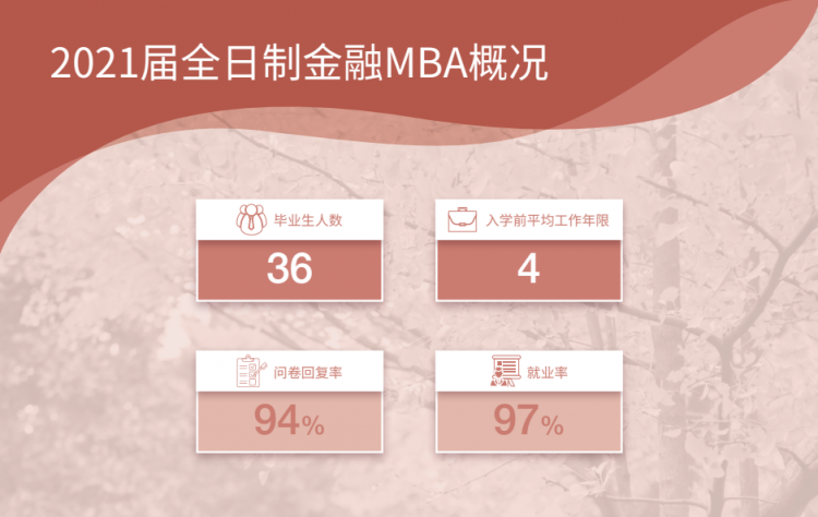 作為中國首個金融專業(yè)方向的工商管理碩士學(xué)位項目,多年來,高金FMBA項目憑借領(lǐng)先全球的金融教育體系和高質(zhì)量的教學(xué)管理得到業(yè)界的高度認可,畢業(yè)生也持續(xù)獲得金融機構(gòu)及希望實現(xiàn)產(chǎn)融結(jié)合的實體企業(yè)的極大青睞。今年畢業(yè)的36名高金2021屆全日制FMBA學(xué)生就業(yè)年薪平均數(shù)達36.2萬元,分別比上年和入學(xué)前增長25.8%和49.9%;中位數(shù)達30萬元,分別比上年和入學(xué)前增長了7.1%和50%。