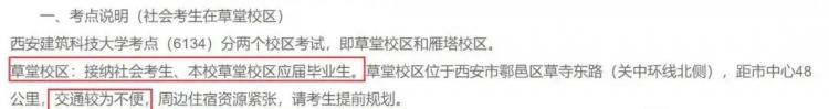西安建筑科技大學(xué)在網(wǎng)報公告中也做了說明:分為兩個校區(qū)考試。