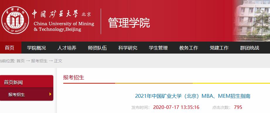 各大院校2021年碩士研究生招生簡(jiǎn)章正在陸續(xù)公布!各大院校碩士研究生招生簡(jiǎn)章為考生提供了院校招生計(jì)劃、報(bào)考條件、網(wǎng)上報(bào)名及現(xiàn)場(chǎng)確認(rèn)、資格審查等重要信息。復(fù)習(xí)備考,信息至關(guān)重要!今天,小編整理了“2021MEM招生簡(jiǎn)章|2021年中國(guó)礦業(yè)大學(xué)(北京)MEM招生簡(jiǎn)章”的相關(guān)內(nèi)容!有相關(guān)報(bào)考意愿的同學(xué)一定要及時(shí)關(guān)注!
