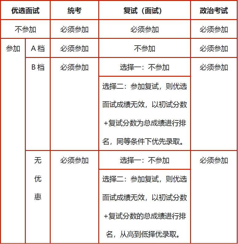 B檔:全國統(tǒng)考成績達(dá)到交大線,政治考試、體檢合格,以初試分?jǐn)?shù)+優(yōu)選面試分?jǐn)?shù)(或復(fù)試分?jǐn)?shù))的總成績進(jìn)行排名,同等條件下優(yōu)先獲得擬錄取資格(優(yōu)選面試分?jǐn)?shù)或者復(fù)試分?jǐn)?shù)低于120分不得錄?。?;