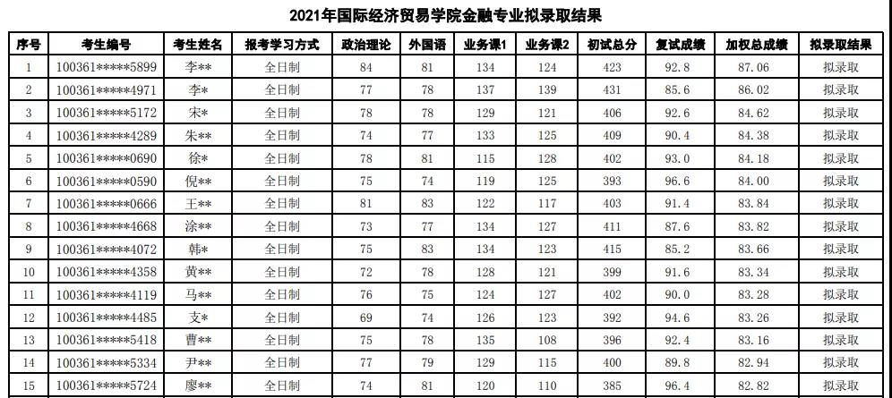 對(duì)外經(jīng)濟(jì)貿(mào)易大學(xué)2021年金融專碩復(fù)試基本分?jǐn)?shù)線為372/72/49