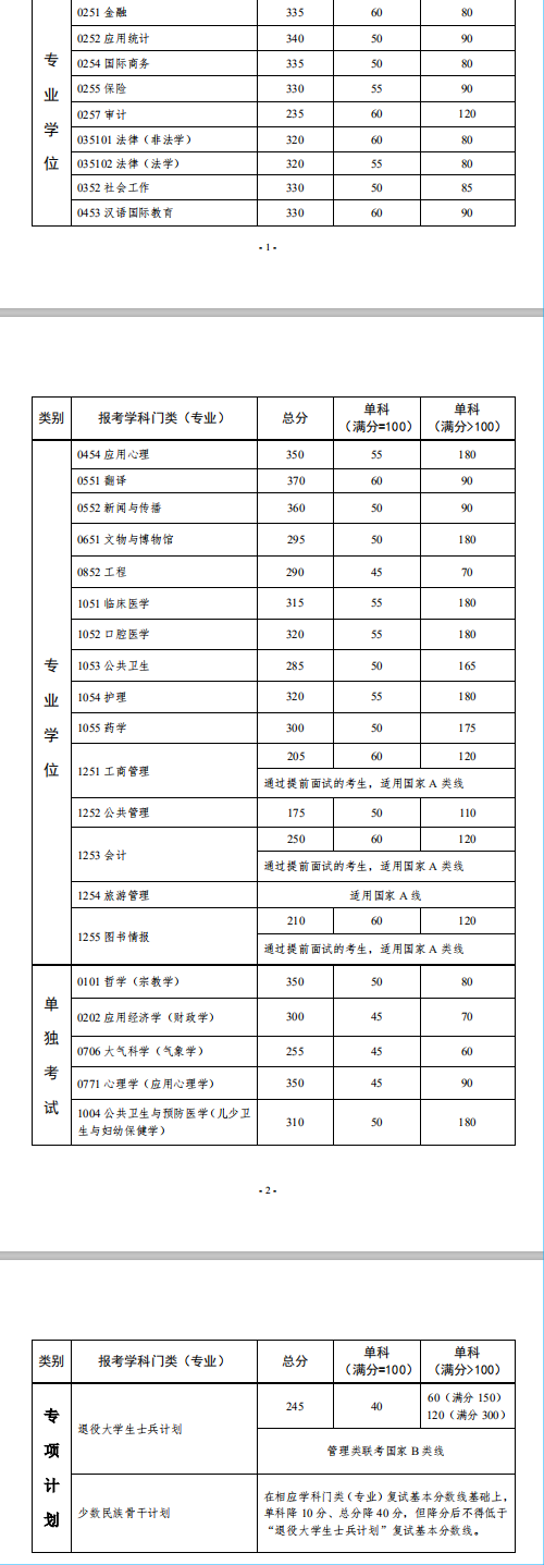 | 少數(shù)民族骨干計劃 | 在相應(yīng)學(xué)科門類(專業(yè))復(fù)試基本分?jǐn)?shù)線基礎(chǔ)上,單科降10分、總分降40分(不得低于國家線)。 | |||