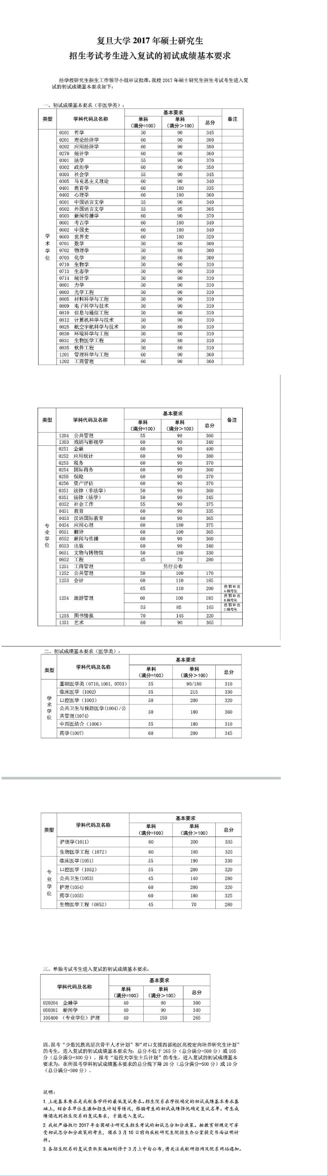 2017年復(fù)旦大學(xué)自主劃線初試成績