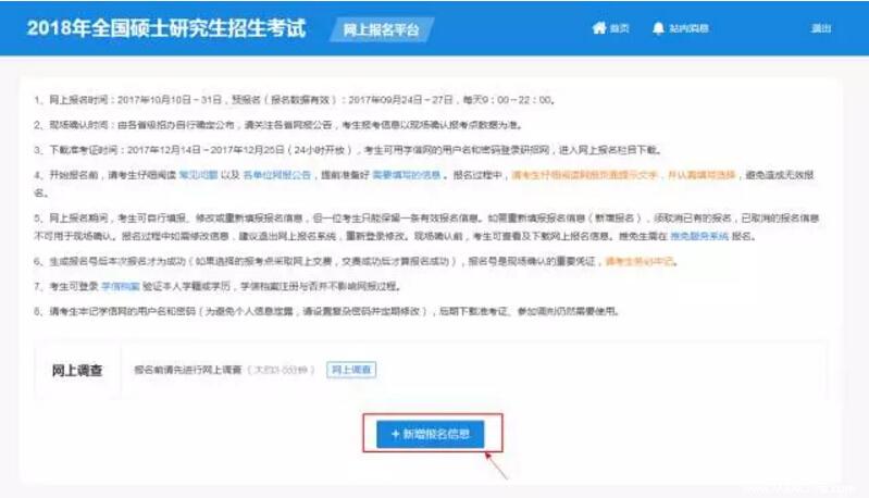 點(diǎn)擊“網(wǎng)上報(bào)名”,然后點(diǎn)擊“新增報(bào)名信息”,正式開始報(bào)名。