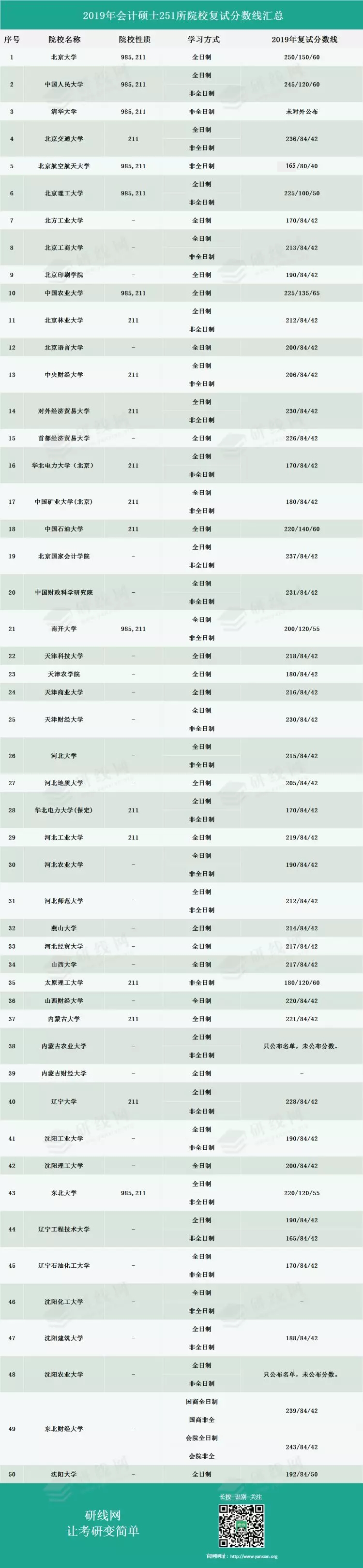 今天為大家整理了“2019年會(huì)計(jì)專碩(MPAcc)251所院校復(fù)試分?jǐn)?shù)線匯總”,希望能幫助到各位報(bào)考會(huì)計(jì)專碩的小伙伴!