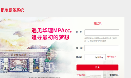 申請者登錄華東理工大學(xué)MPAcc官方網(wǎng)站http://bs.ecust.edu.cn/mpacc,在“考生專區(qū)”中,點擊“考生背景預(yù)審”,選擇“非全日制預(yù)審入口”或者直接點擊http://ecust.netapply.cn/user/login/mpacc/86進行網(wǎng)上注冊申請。