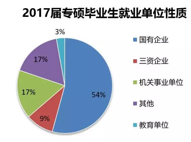 其次,按就業(yè)單位性質(zhì)分類,過半的畢業(yè)生就業(yè)單位為國有企業(yè);約17%的畢業(yè)生選擇機(jī)關(guān)事業(yè)單位,如公務(wù)員單位、研究院、醫(yī)院等;部分畢業(yè)生選擇三資企業(yè),以四大會計師事務(wù)所為主。
