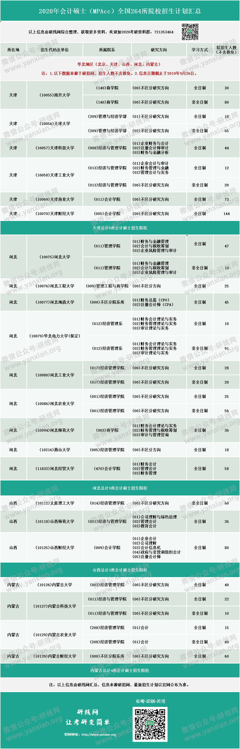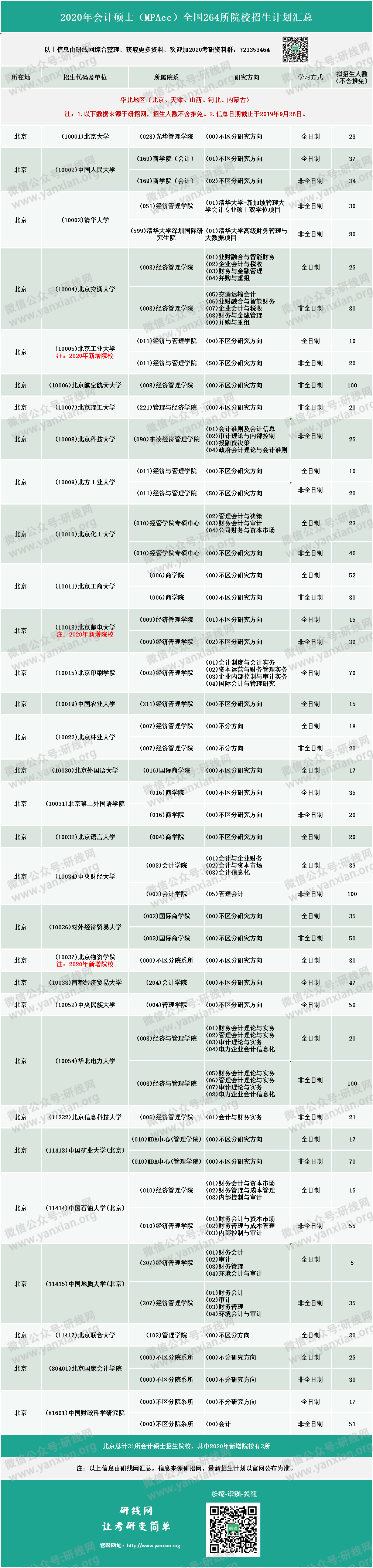 【2020年會(huì)計(jì)碩士(MPAcc)全國(guó)招生信息匯總】(即:華北、華東、華中、華南、東北、西南、西北)連載一!