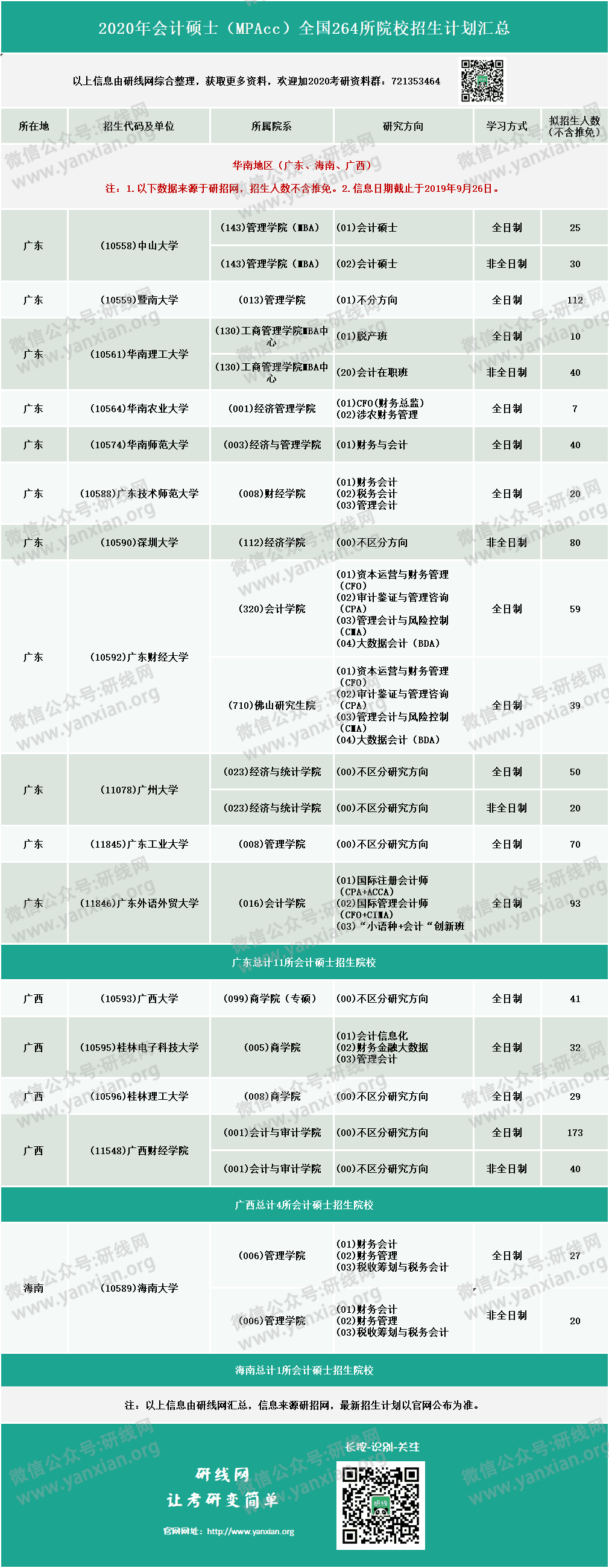 導(dǎo)讀:請(qǐng)考生認(rèn)真查看研線網(wǎng)匯總“2020年會(huì)計(jì)碩士(MPAcc)全國(guó)招生信息連載之華北、華南地區(qū)”的全部?jī)?nèi)容!結(jié)合自身情況,客觀選擇報(bào)考院校。