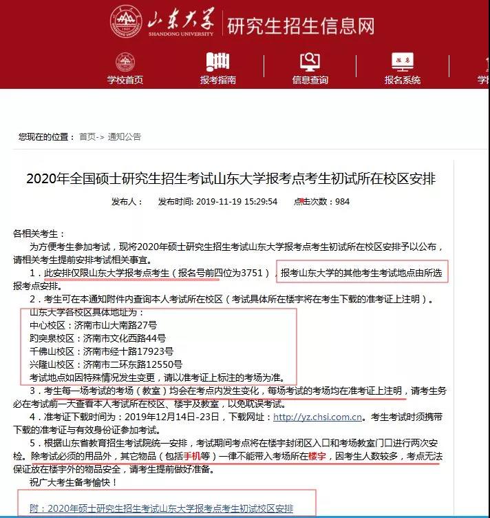 1、僅限選擇山東大學報考點的考生,報考山東大學的其他省份的學生按照所在報考點的安排考試。
