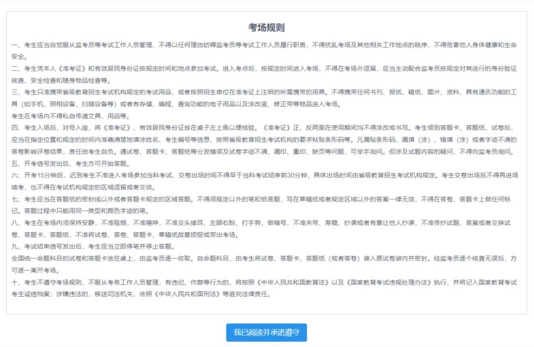 點(diǎn)擊“我已閱讀并承諾遵守”按鈕后,進(jìn)入省級(jí)教育招生考試機(jī)構(gòu)公告頁面。