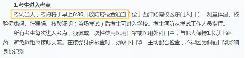 發(fā)現(xiàn)這幾個(gè)考點(diǎn)公布了開始防疫檢查通道的時(shí)間,基本都是6.30,離得遠(yuǎn)的同學(xué)記得早起哦~