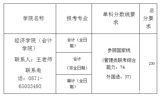 注:報考云南大學(xué)會計(全日制)的考生若達到以上要求,并符合我校調(diào)劑條件,可以通過中國研招網(wǎng)申請調(diào)劑我校會計(非全日制)專業(yè),調(diào)劑成功的考生將不再列入我校會計(全日制)專業(yè)的復(fù)試名單。