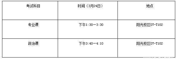 考生于3月25日上午8:00憑身份證原件及初試準(zhǔn)考證到陽(yáng)光校區(qū)七號(hào)樓402室參加綜合面試。