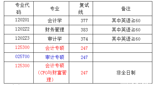 1、少數(shù)民族骨干人才計劃分數(shù)線:普碩(含會計學、財務管理、審計學)復試分數(shù)線為300分,專業(yè)碩士復試分數(shù)為211分。退役大學生士兵計劃:復試分數(shù)線為總分不低于156分。