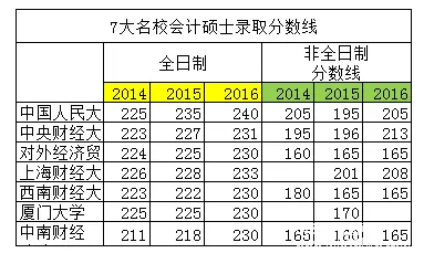 1.會計碩士錄取分數(shù)線(14-16年)