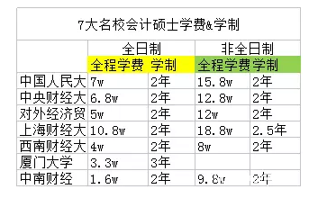2. 七大名校會計碩士學費&學制
