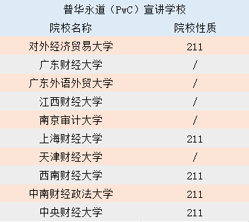 根據(jù)上面的整理,很明顯可以看出四大在招人的時(shí)候,除了傳統(tǒng)意義上的強(qiáng)校以外,對(duì)于很多財(cái)經(jīng)類院校也是非常青睞的,其中有幾所學(xué)校,四大都恩寵有加: