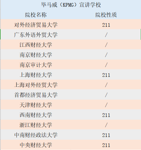 四大的宣講會(huì)院校,基本上就是四大最喜歡招聘的院校。這里給大家整理了一份清單,快來一起看看吧。