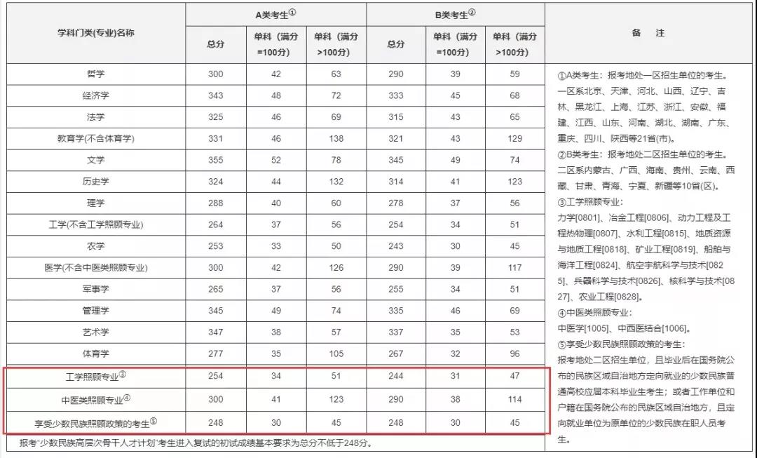 這些學(xué)科一般需求量較大,但上線生源較少。照顧專業(yè)單獨(dú)劃定進(jìn)入復(fù)試的初試成績(jī)基本要求(一般比非照顧專業(yè)略低)。