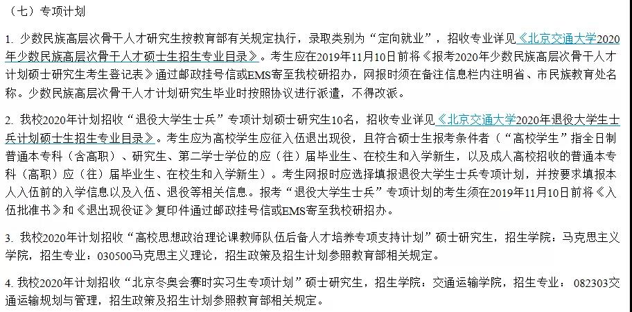 大部分院校的專項(xiàng)計(jì)劃主要為“少干計(jì)劃”與“大學(xué)生士兵計(jì)劃”,具體要求需要同學(xué)到報(bào)考院校研究生官網(wǎng)查看。