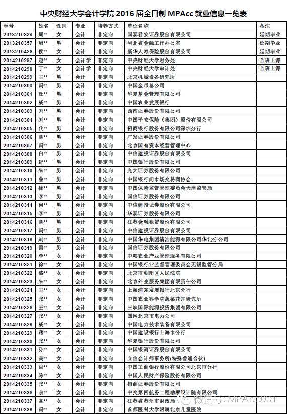 導語:中央財經(jīng)大學大學會計學院自2004年成為全國首批具有“會計碩士專業(yè)學位(MPAcc)”辦學資格的院校以來,一共培養(yǎng)了2000多名會計專業(yè)人才。為了讓更多的人了解會計碩士教育項目,我們對外發(fā)布了2016屆全日制會計碩士畢業(yè)生就業(yè)情況。