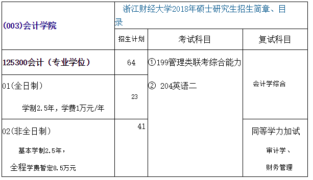 導(dǎo)讀:浙江財(cái)經(jīng)大學(xué)2018年研究生招生簡(jiǎn)章、MPAcc專業(yè)目錄: