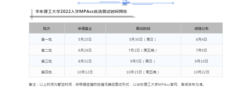 原文標(biāo)題:華東理工大學(xué)2022年入學(xué)MPAcc優(yōu)選面試時(shí)間預(yù)告