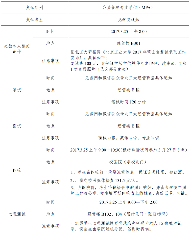 導(dǎo)讀:北京工業(yè)大學(xué)經(jīng)濟(jì)與管理學(xué)院2017年MPA復(fù)試安排如下: