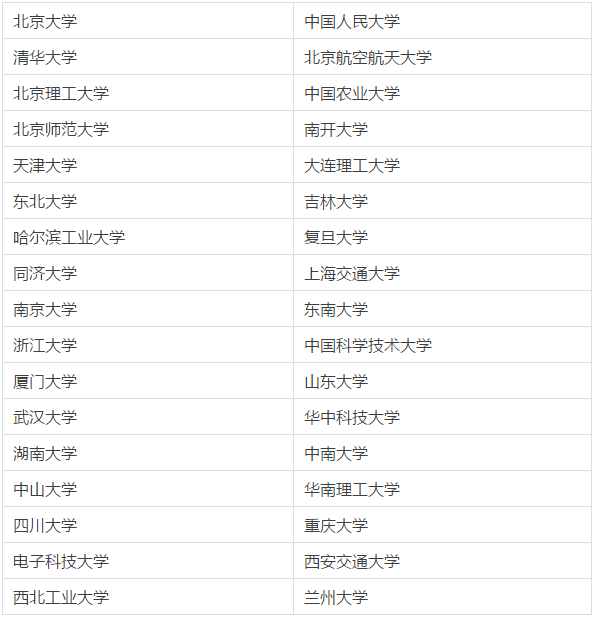 進行自主確定復(fù)試分?jǐn)?shù)線改革試點的高校名單(34所)