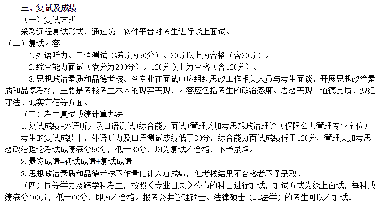 導讀:研究生復試是同學們通關考研的重要一環(huán),想要在復試階段游刃有余,必須做好充分的準備。為了幫助2021MPA考生更好地著手準備復試,小編為大家整理了“2021MPA復試:東北師范大學MPA復試內(nèi)容、復試要求、復試成績計算”,內(nèi)容主要來自2020院校官網(wǎng)公布的復試信息,希望對大家有所幫助!