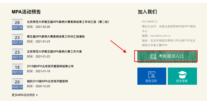登陸中心官網(wǎng):https://mpa.bnu.edu.cn/ ,點(diǎn)擊考前面試入口進(jìn)行登錄;
