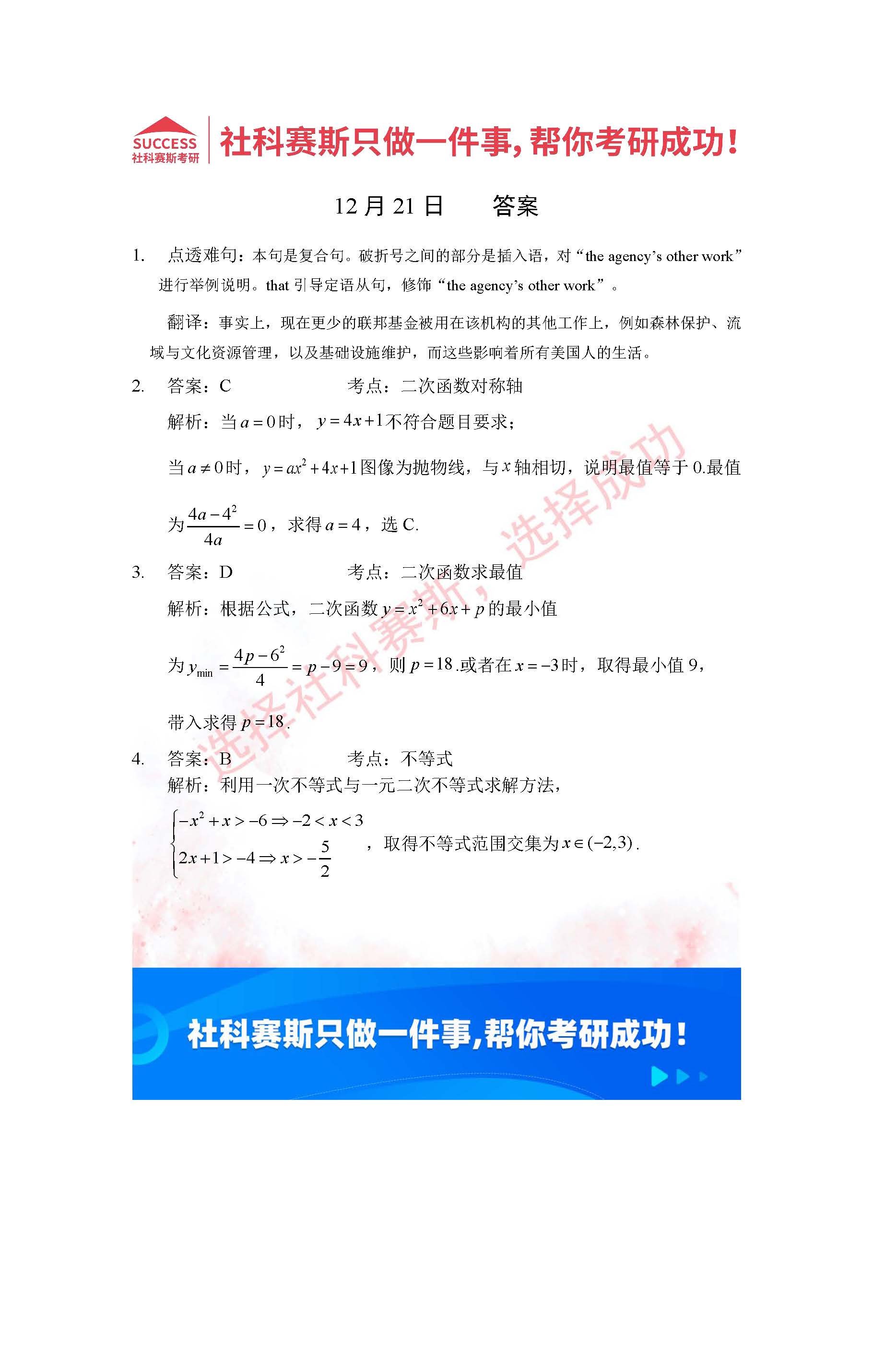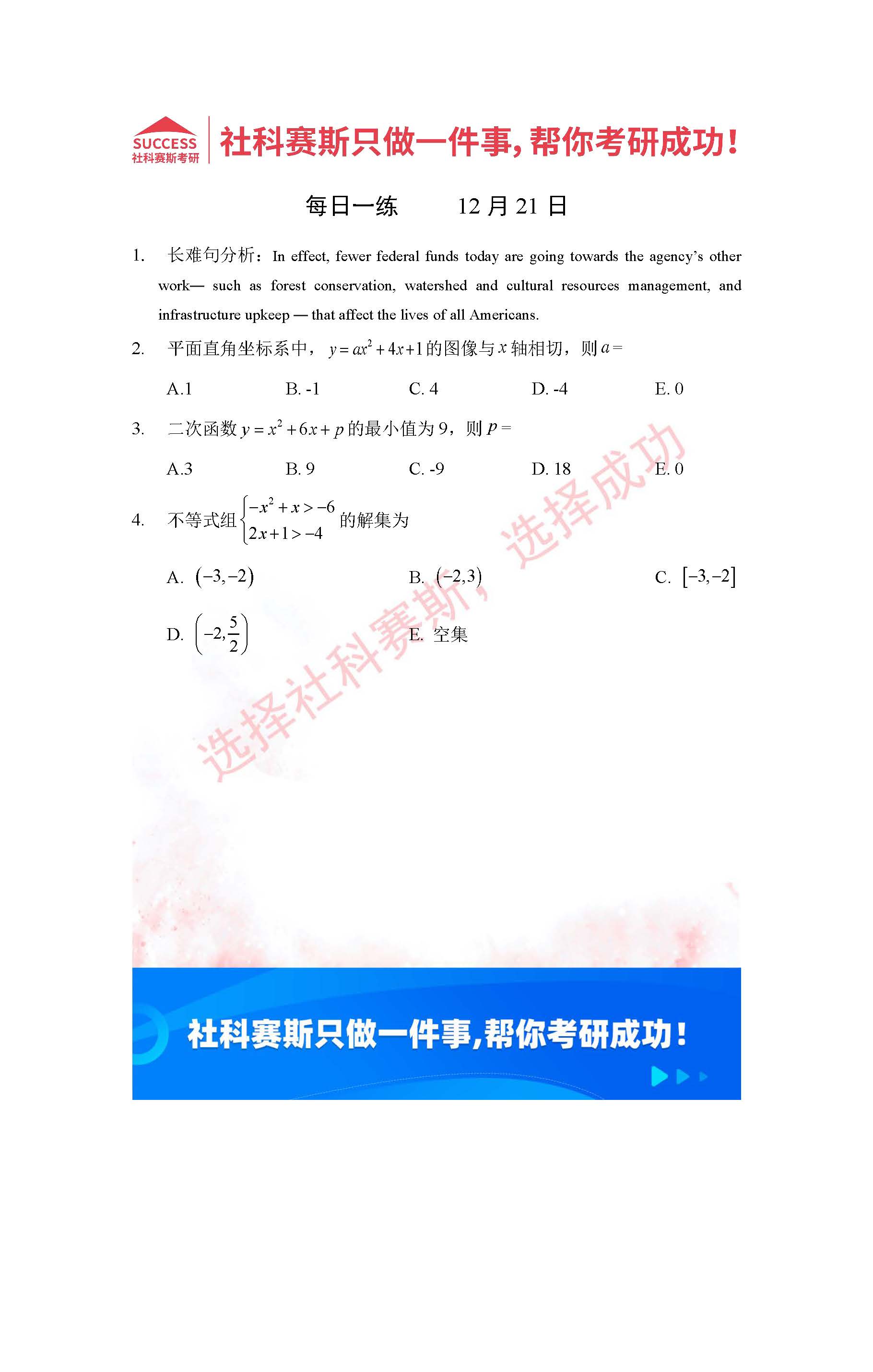 導(dǎo)讀:考研是一場(chǎng)持久戰(zhàn),保持良好的學(xué)習(xí)習(xí)慣,是能確保復(fù)習(xí)高效的關(guān)鍵。今天社科賽斯MBA備考網(wǎng)小編整理了“2022管理類聯(lián)考12月21日每日一練及答案”的內(nèi)容,希望能對(duì)廣大考生有所幫助。