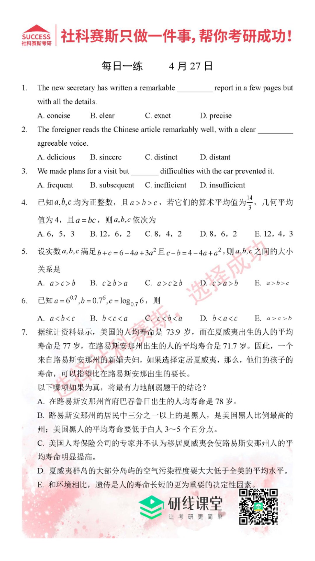 導(dǎo)讀:考研是一場(chǎng)持久戰(zhàn),保持良好的學(xué)習(xí)習(xí)慣,是能確保復(fù)習(xí)高效的關(guān)鍵。MBA備考網(wǎng)小編整理了管綜的每日一練,希望能對(duì)廣大考生有所幫助。