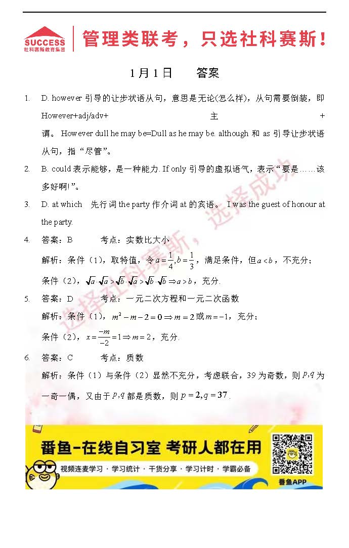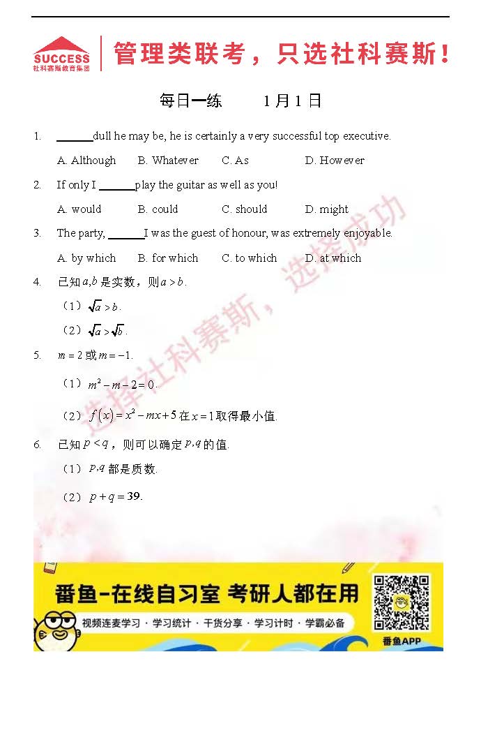 首頁> 管理類聯(lián)考每日一練 > 2022管理類聯(lián)考1月1日每日一練及答案