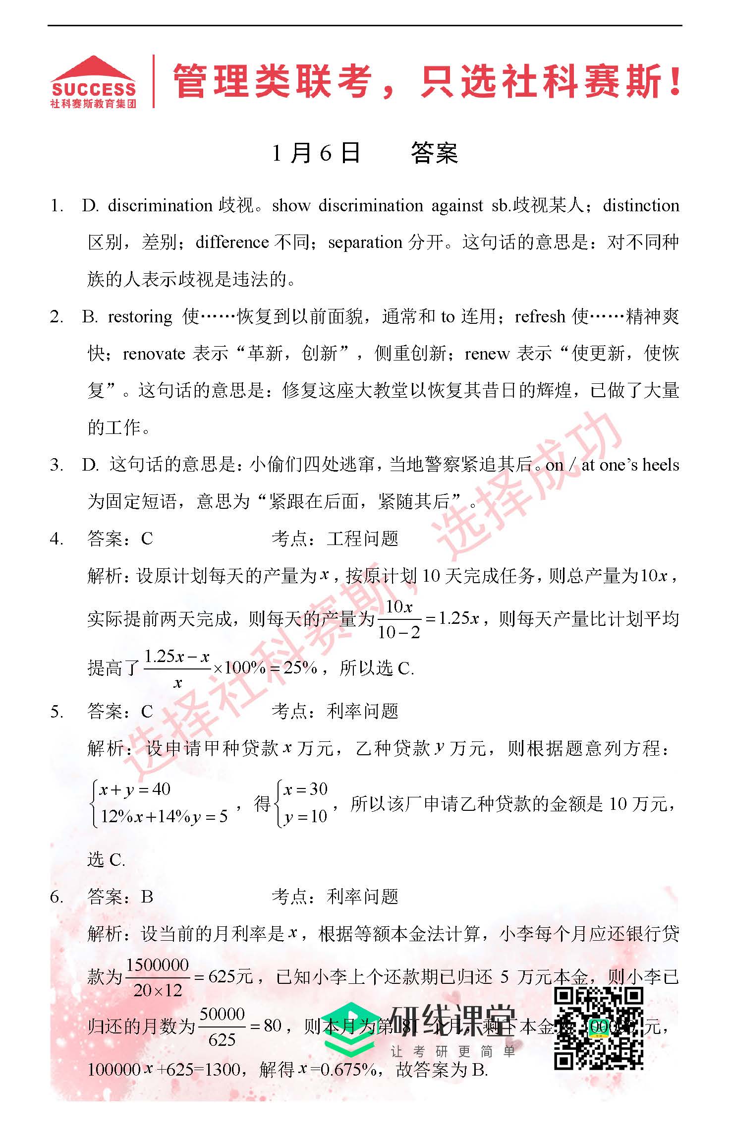 導(dǎo)讀:考研是一場(chǎng)持久戰(zhàn),保持良好的學(xué)習(xí)習(xí)慣,是能確保復(fù)習(xí)高效的關(guān)鍵。今天社科賽斯MBA備考網(wǎng)小編整理了“2022管理類聯(lián)1月6日每日一練及答案”的內(nèi)容,希望能對(duì)廣大考生有所幫助。