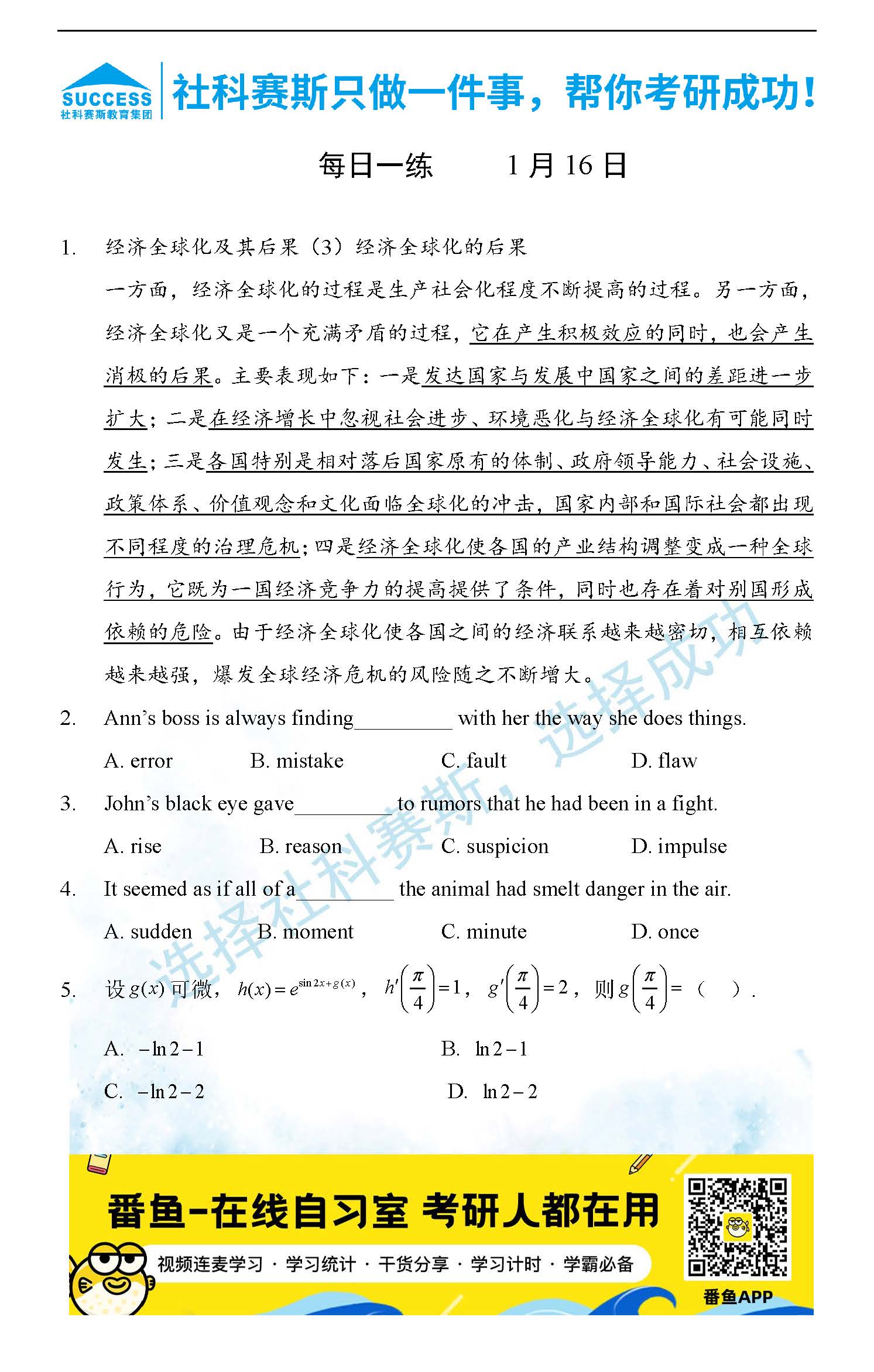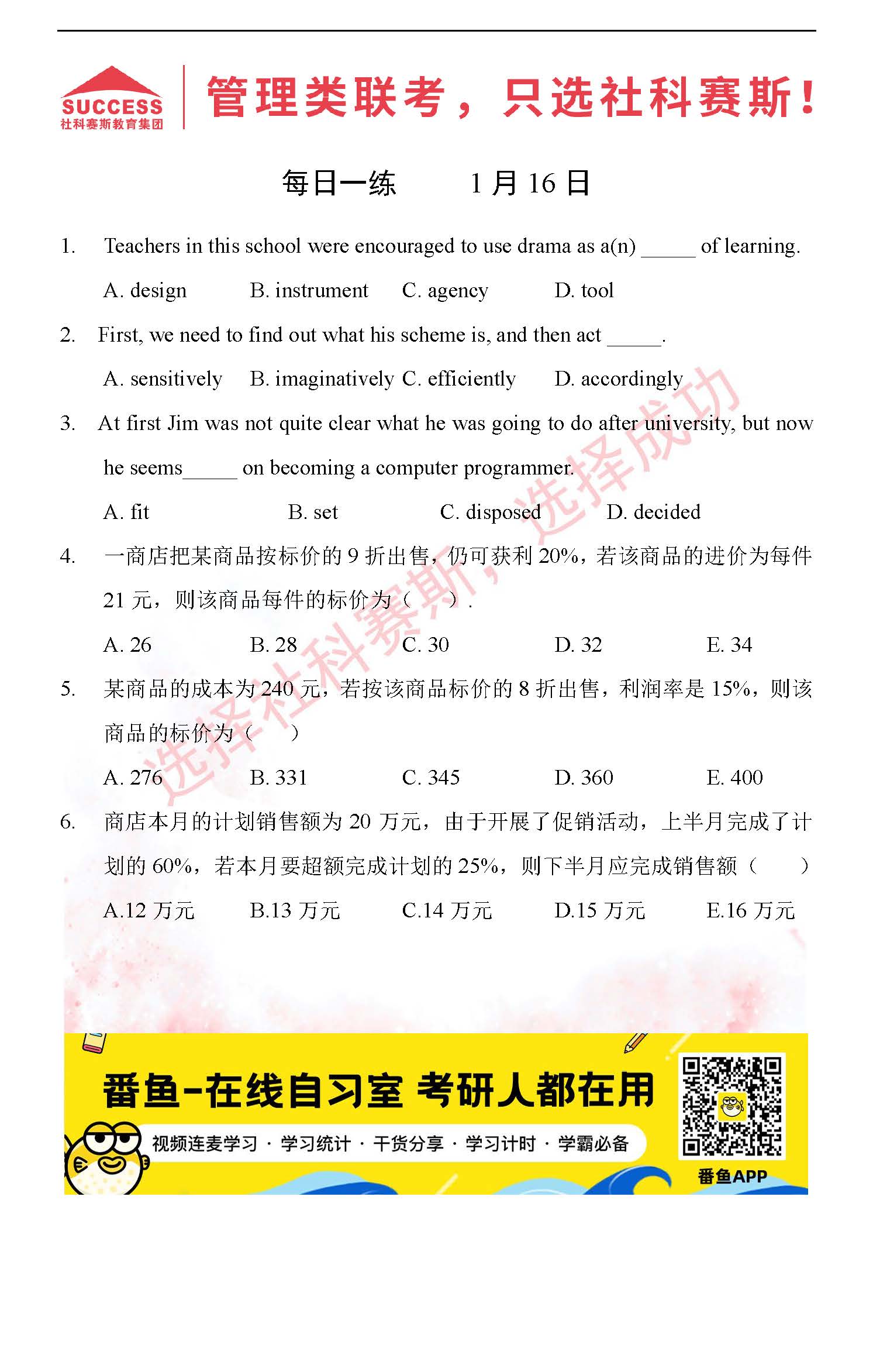 首頁> 管理類聯(lián)考每日一練 > 2022管理類聯(lián)考1月16日每日一練及答案
