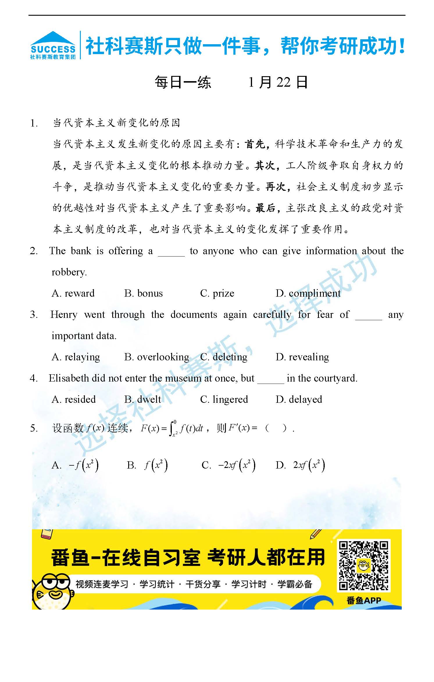 導(dǎo)讀:考研是一場持久戰(zhàn),保持良好的學(xué)習(xí)習(xí)慣,是能確保復(fù)習(xí)高效的關(guān)鍵。今天社科賽斯MBA備考網(wǎng)小編整理了“2022管理類聯(lián)1月22日每日一練及答案”的內(nèi)容,希望能對廣大考生有所幫助。