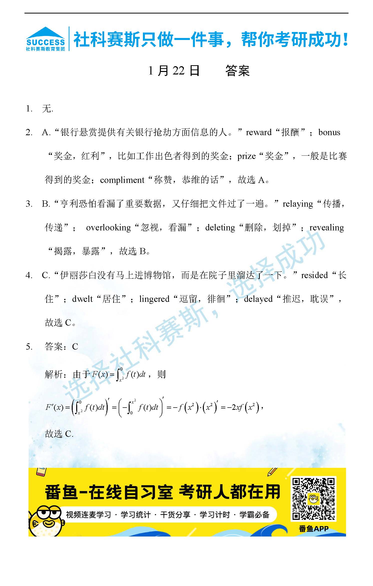 首頁> 管理類聯(lián)考每日一練 > 2022管理類聯(lián)考1月22日每日一練及答案