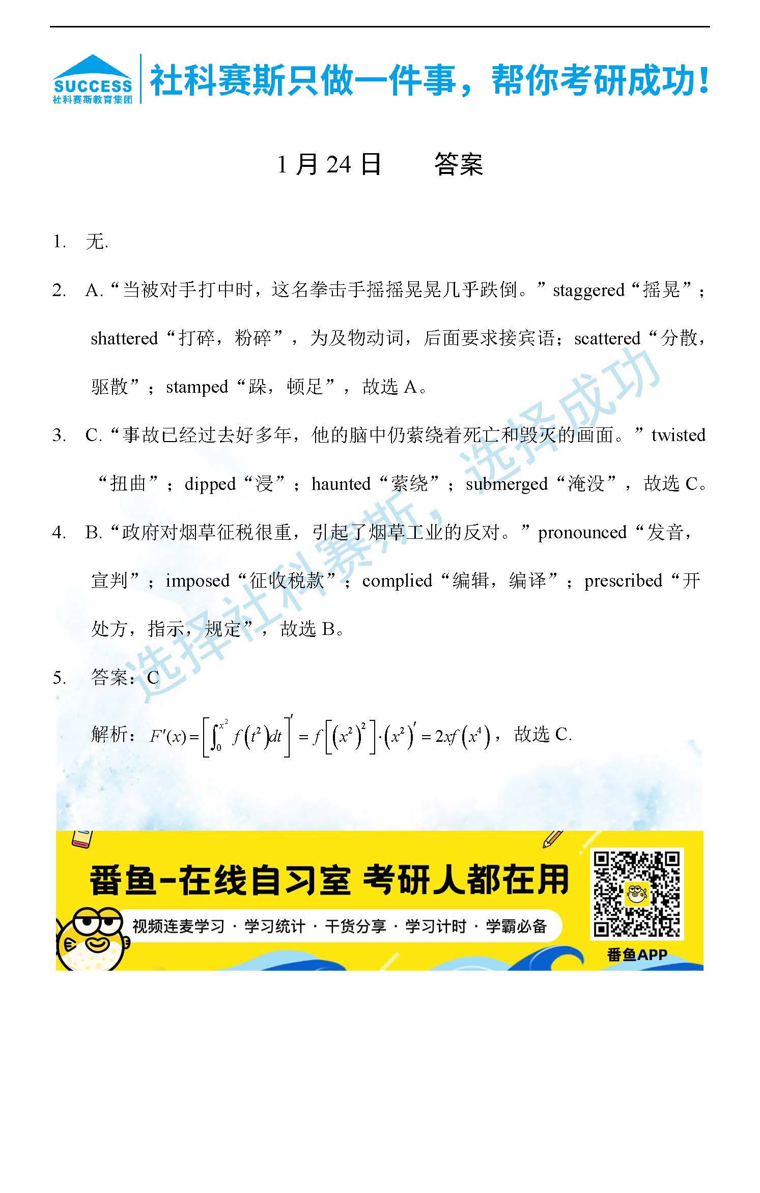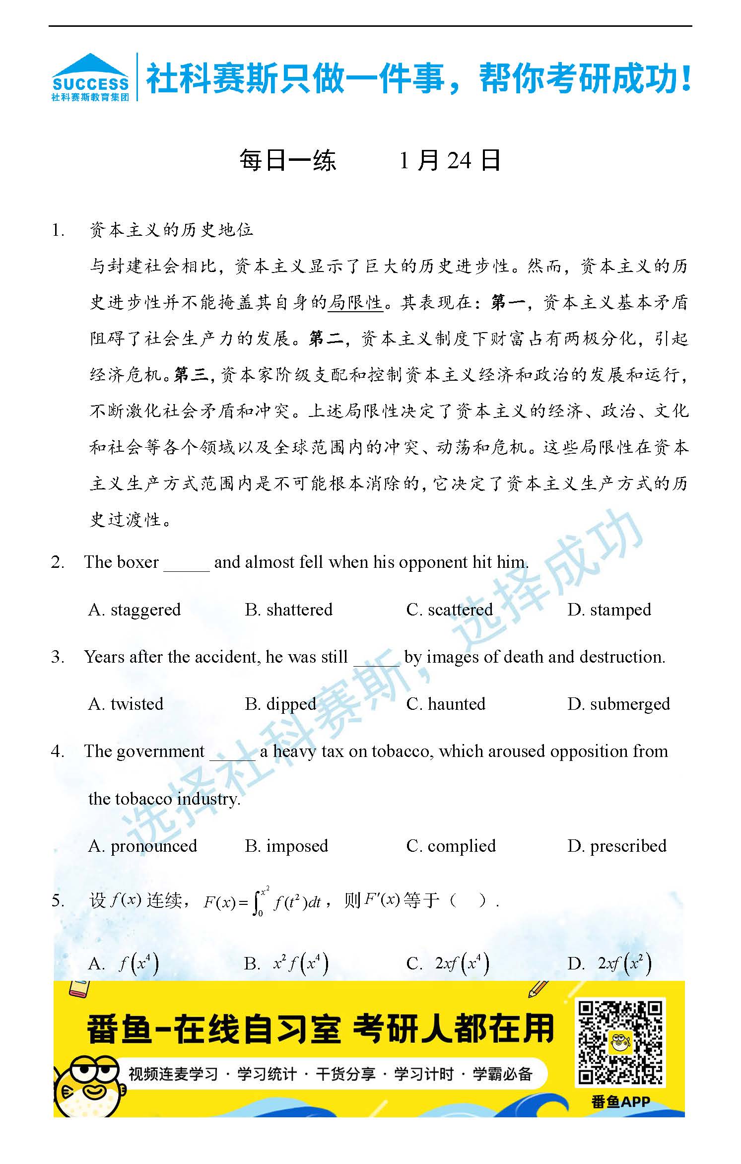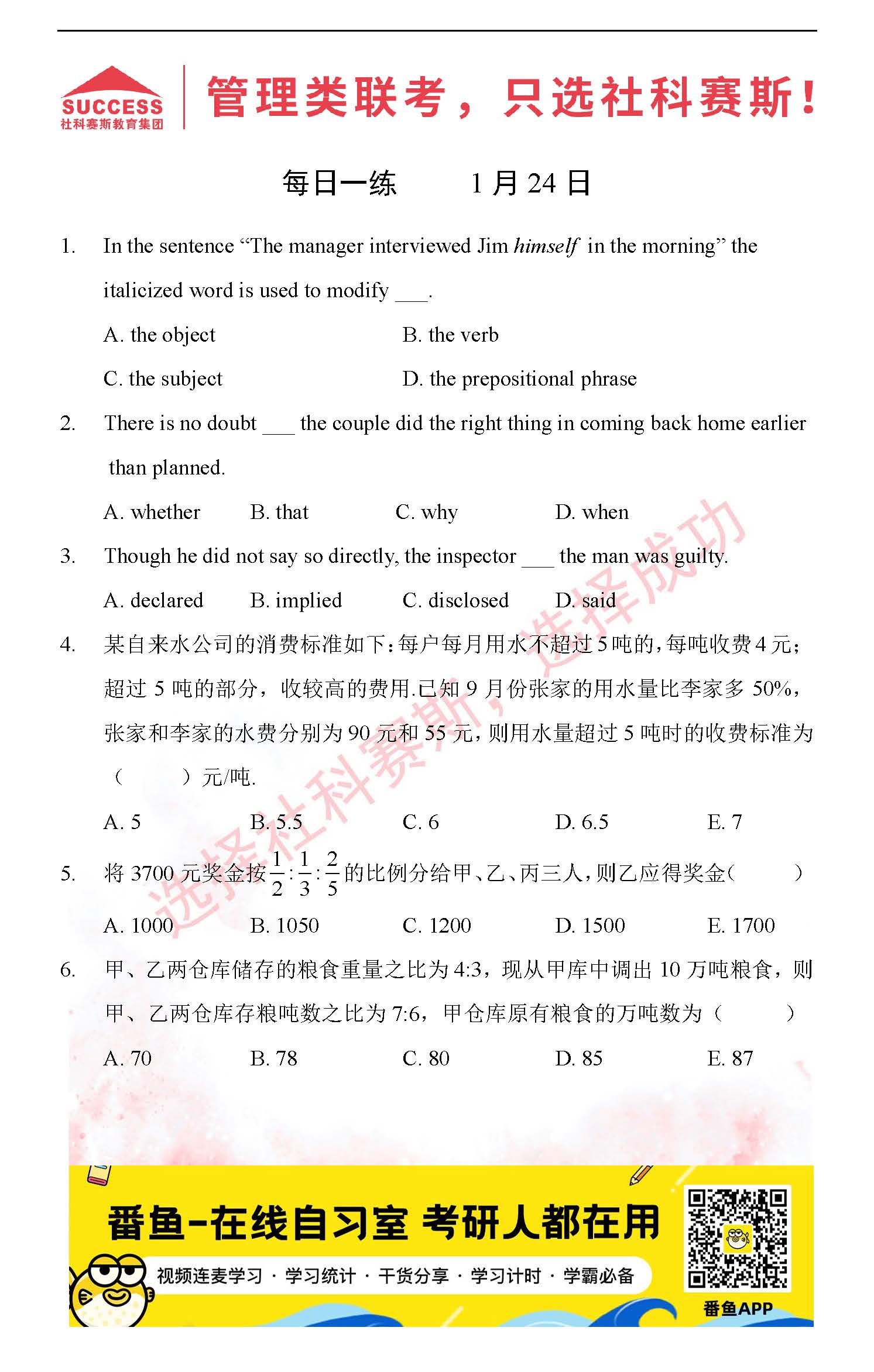 導(dǎo)讀:考研是一場(chǎng)持久戰(zhàn),保持良好的學(xué)習(xí)習(xí)慣,是能確保復(fù)習(xí)高效的關(guān)鍵。今天社科賽斯MBA備考網(wǎng)小編整理了“2022管理類聯(lián)1月24日每日一練及答案”的內(nèi)容,希望能對(duì)廣大考生有所幫助。
