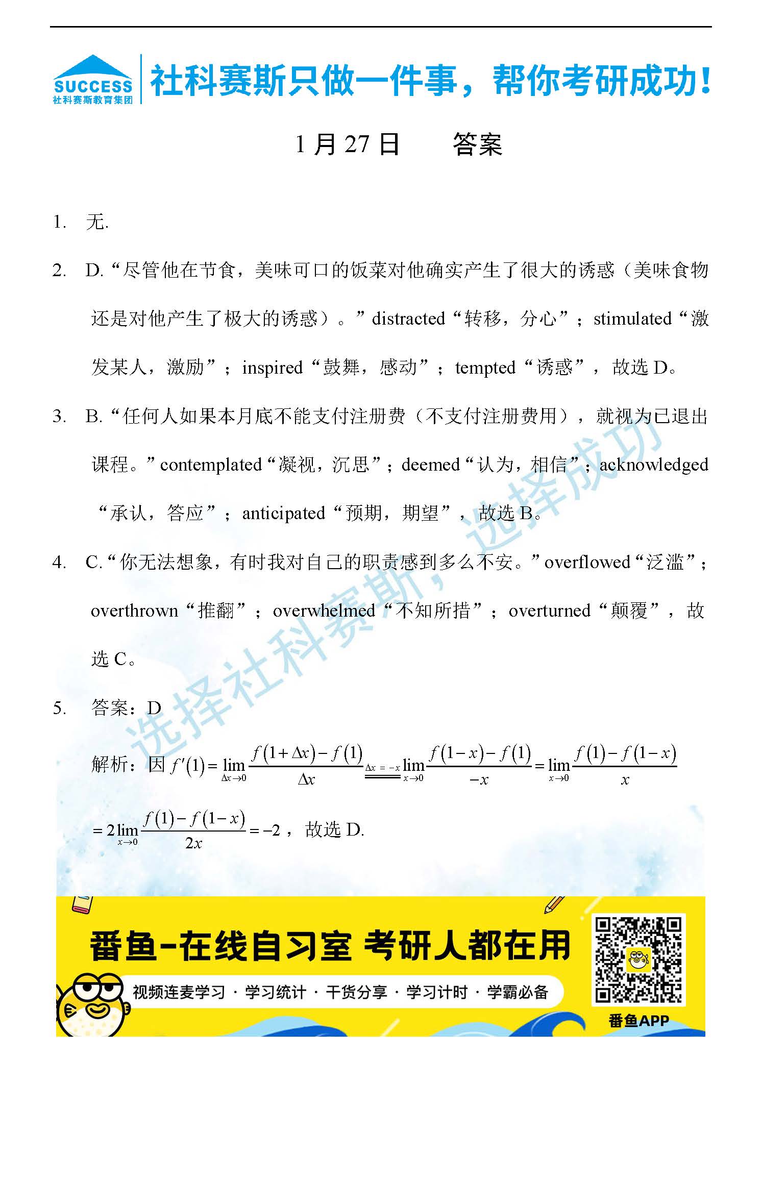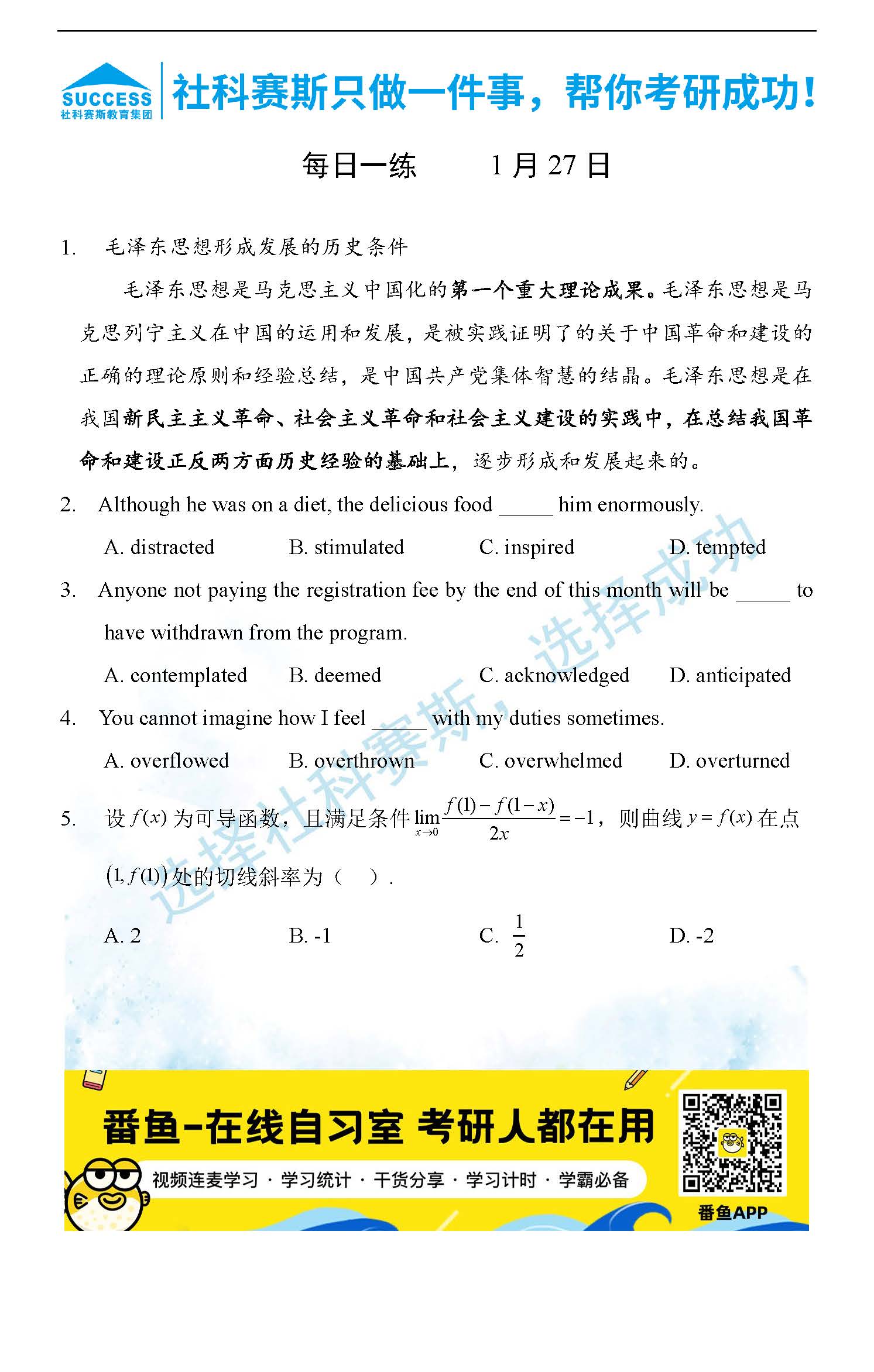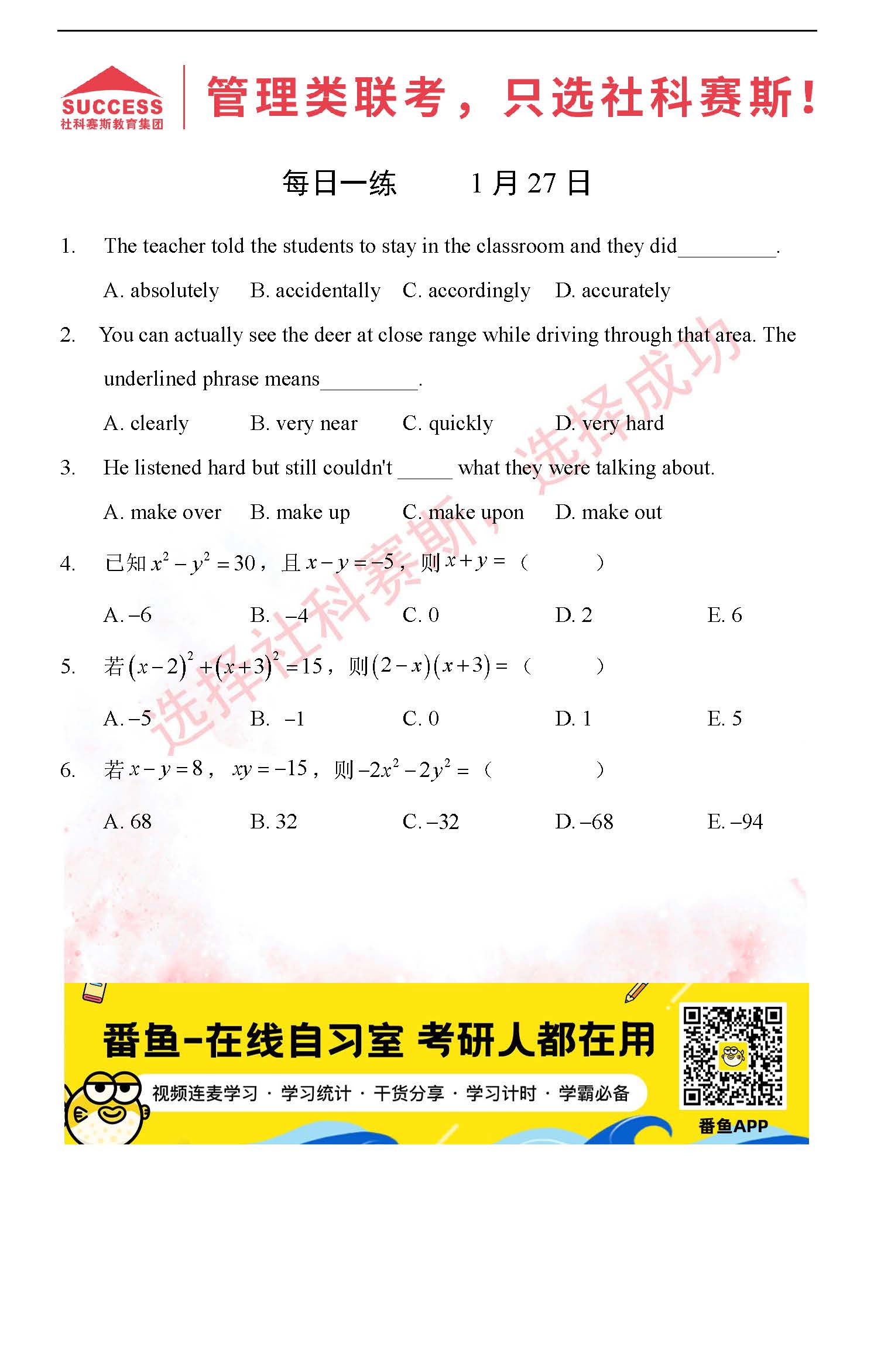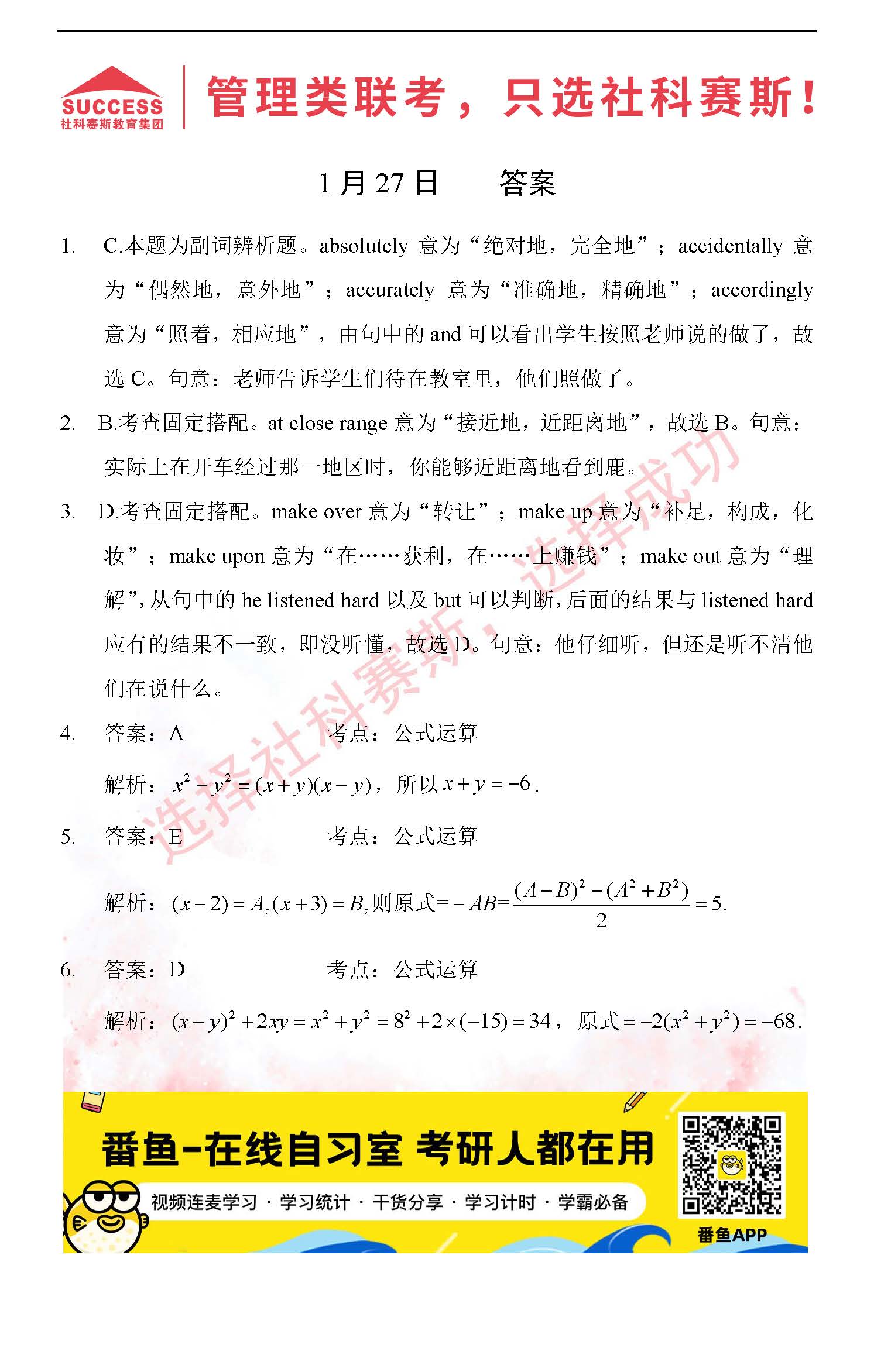 首頁> 管理類聯(lián)考每日一練 > 2022管理類聯(lián)考1月27日每日一練及答案
