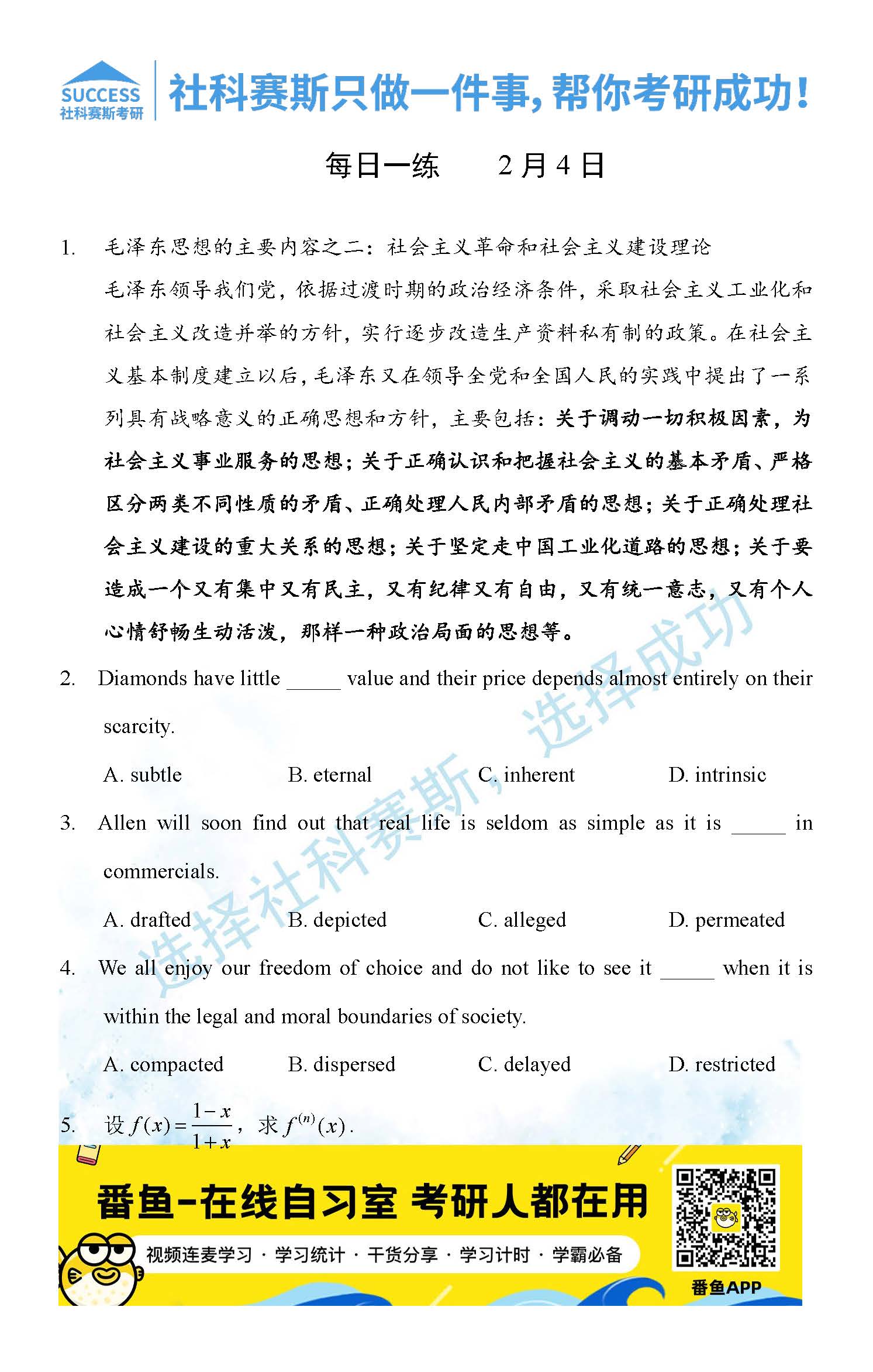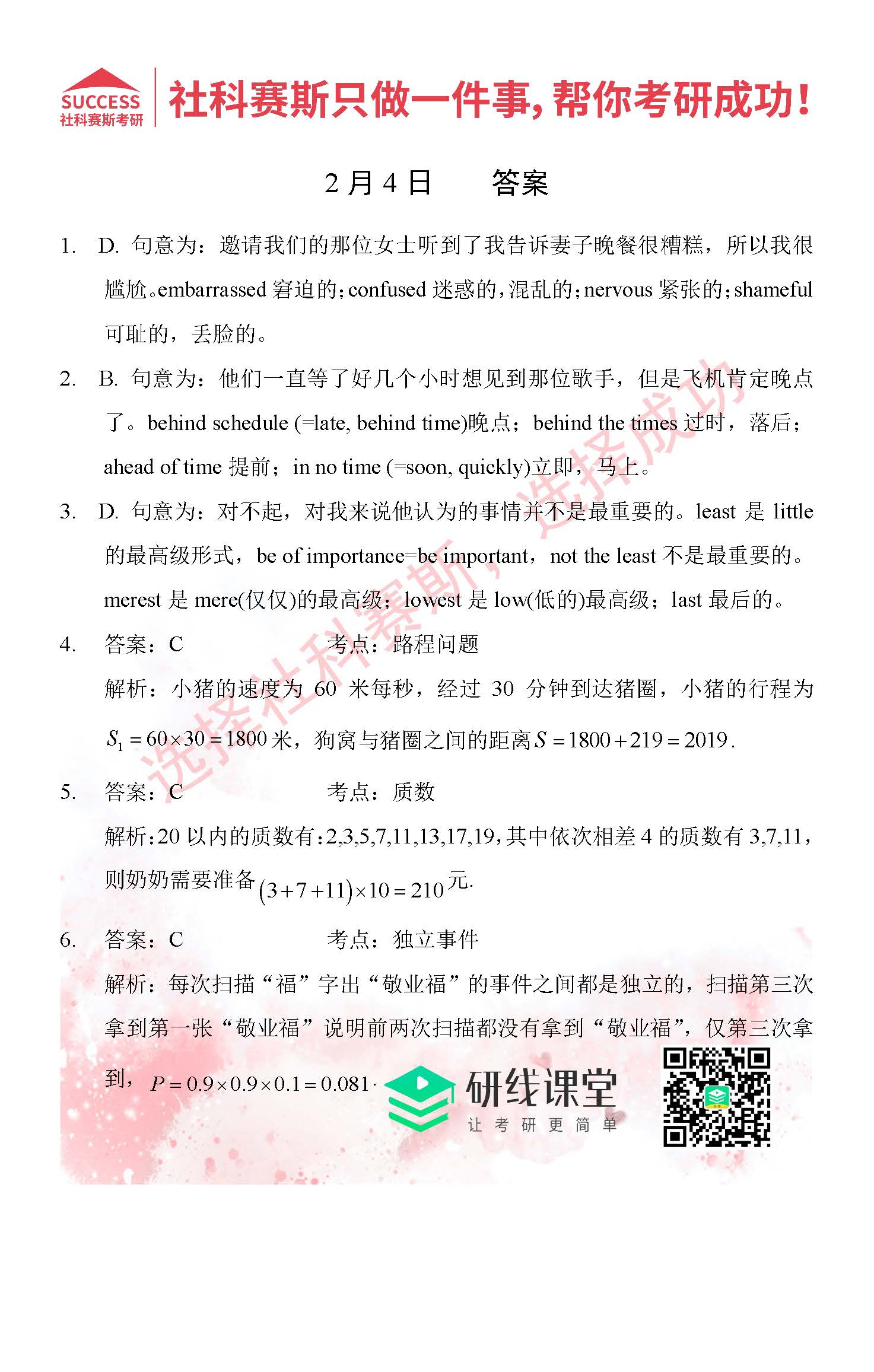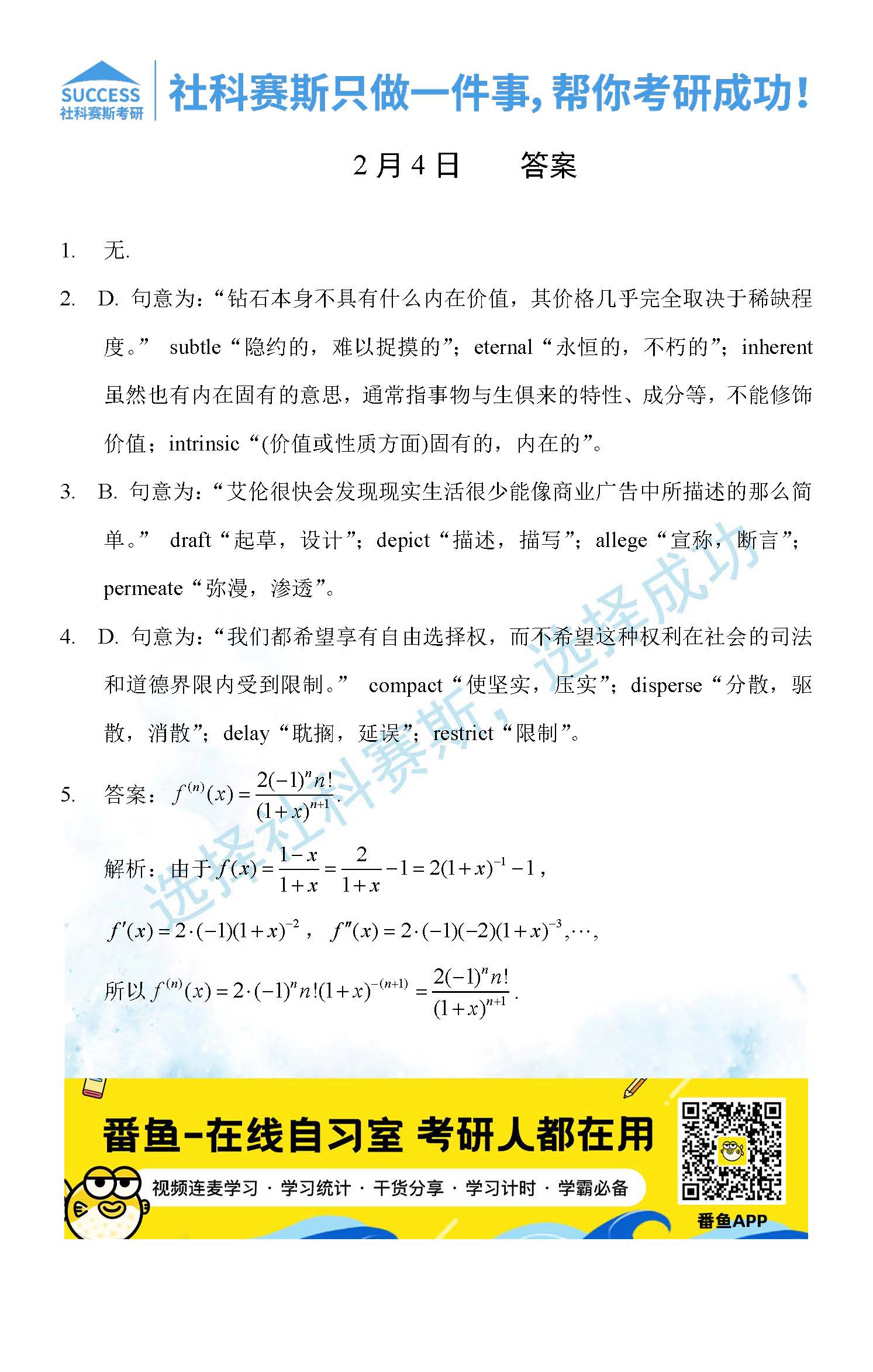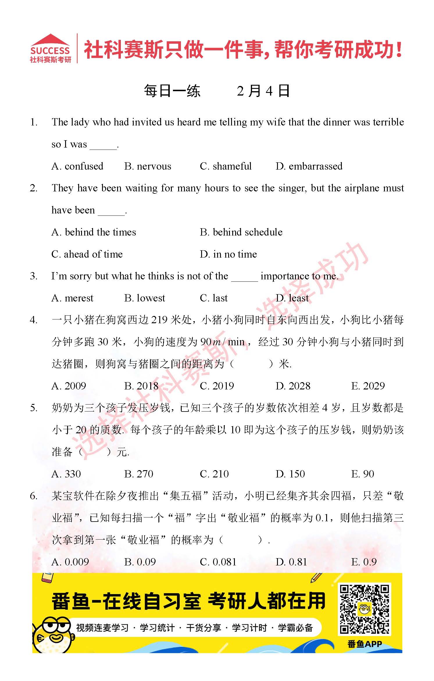 導讀:考研是一場持久戰(zhàn),保持良好的學習習慣,是能確保復習高效的關鍵。今天社科賽斯MBA備考網(wǎng)小編整理了“2022管理類聯(lián)2月4日每日一練及答案”的內(nèi)容,希望能對廣大考生有所幫助。