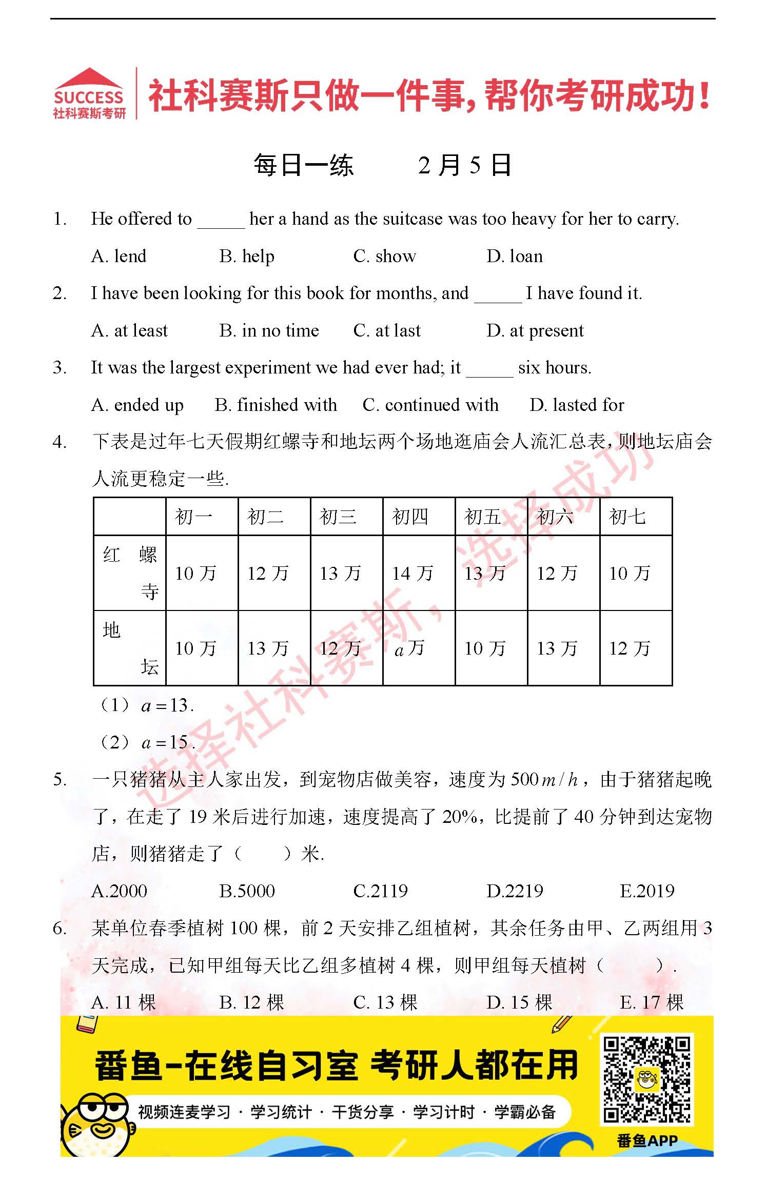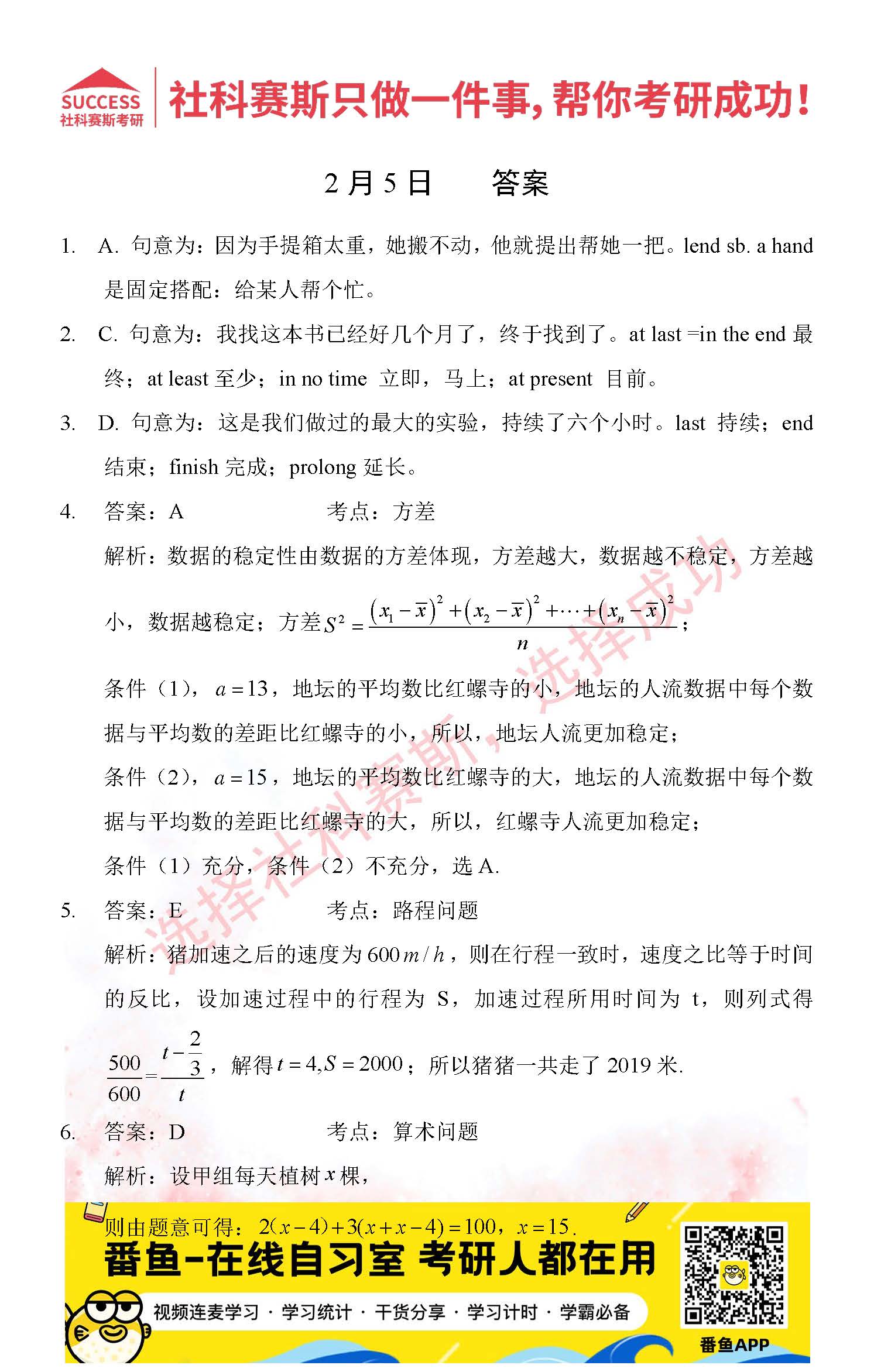 導(dǎo)讀:考研是一場持久戰(zhàn),保持良好的學(xué)習(xí)習(xí)慣,是能確保復(fù)習(xí)高效的關(guān)鍵。今天社科賽斯MBA備考網(wǎng)小編整理了“2022管理類聯(lián)2月5日每日一練及答案”的內(nèi)容,希望能對廣大考生有所幫助。